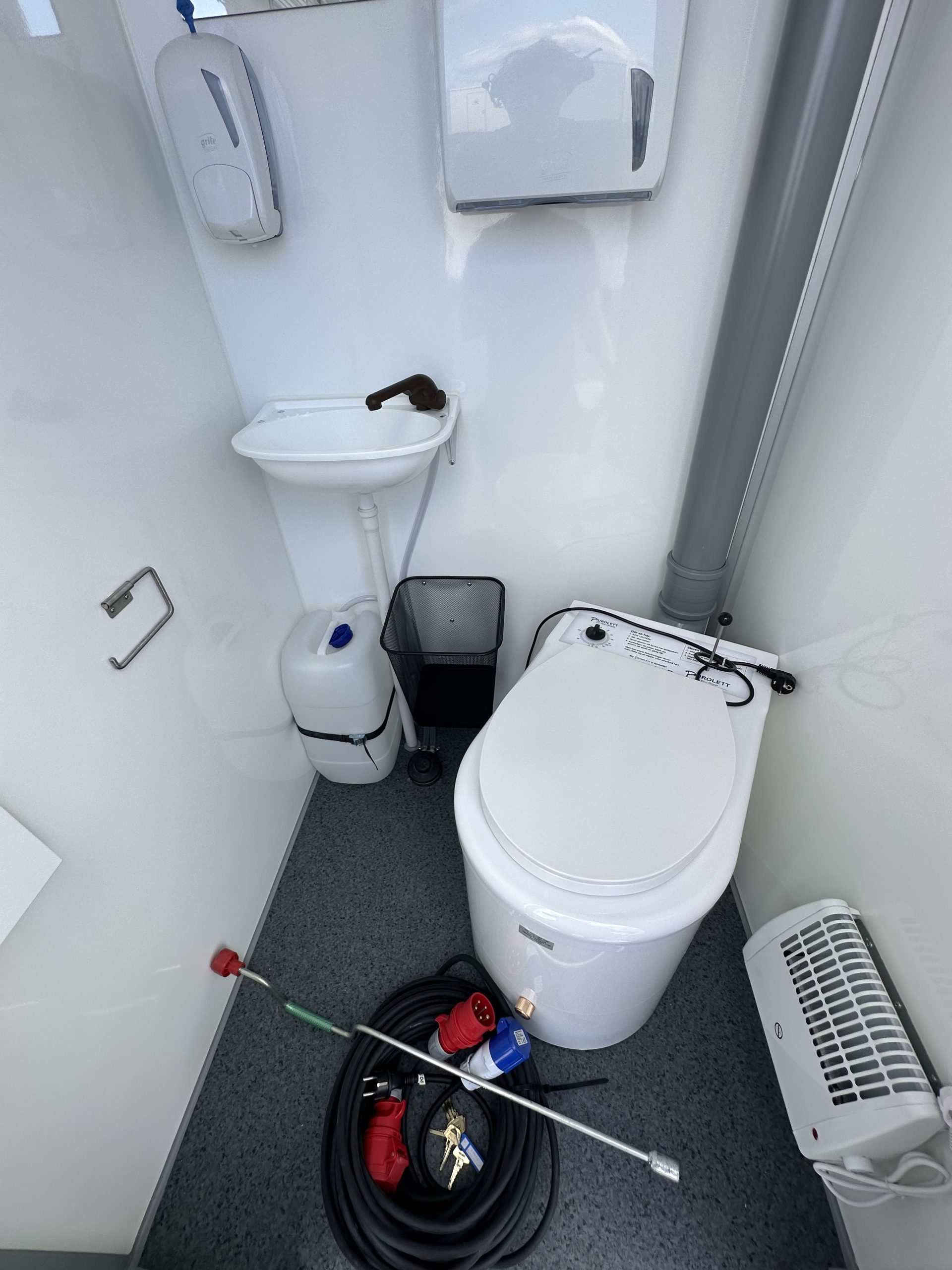 Purolett Förbränningstoalett ( går att nyttja på både 1-fas och 3-fas vid arbete ute hos kund då toan kan köras individuellt på 1 eller 2 brännare. 1100W / brännare.