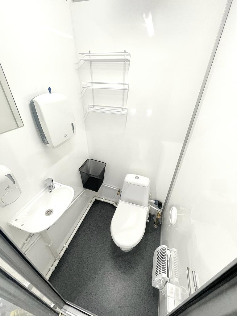 Vattenspolande Toalett – (Macarator ( Upp till 20m ifrån avlopp kan man stå placerad ) Tillval )