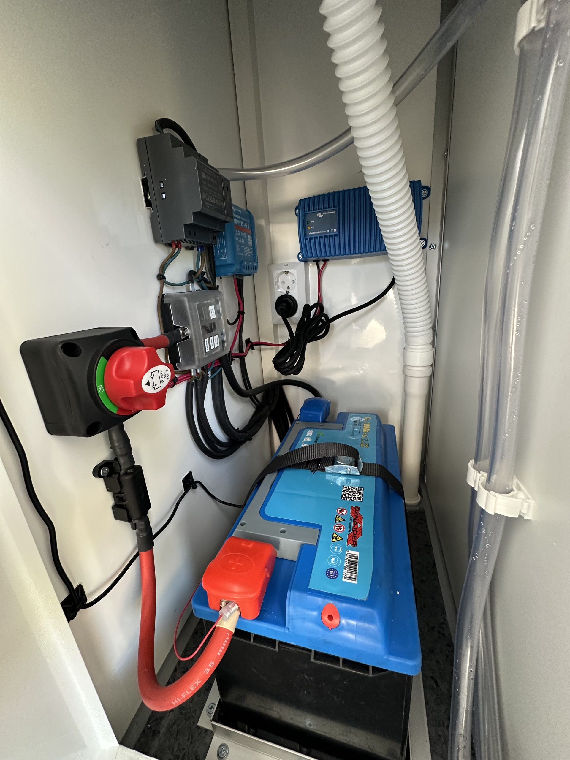 * vid inkoppling av extern 230V laddas batteriet. Ledbelysningen går alltid på 12V.